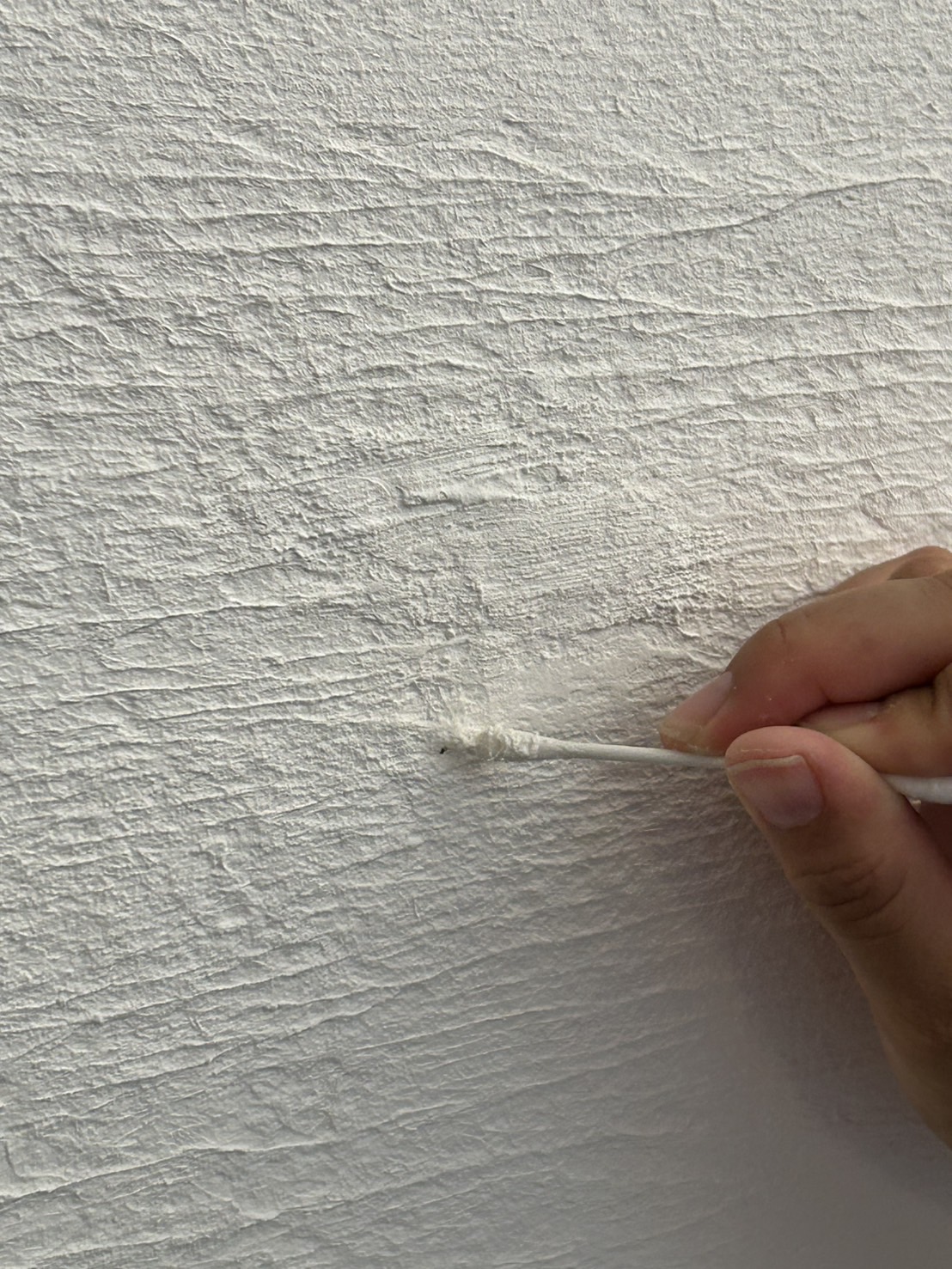指や綿棒などを使い、補修用の漆喰で穴を優しく埋めます。
