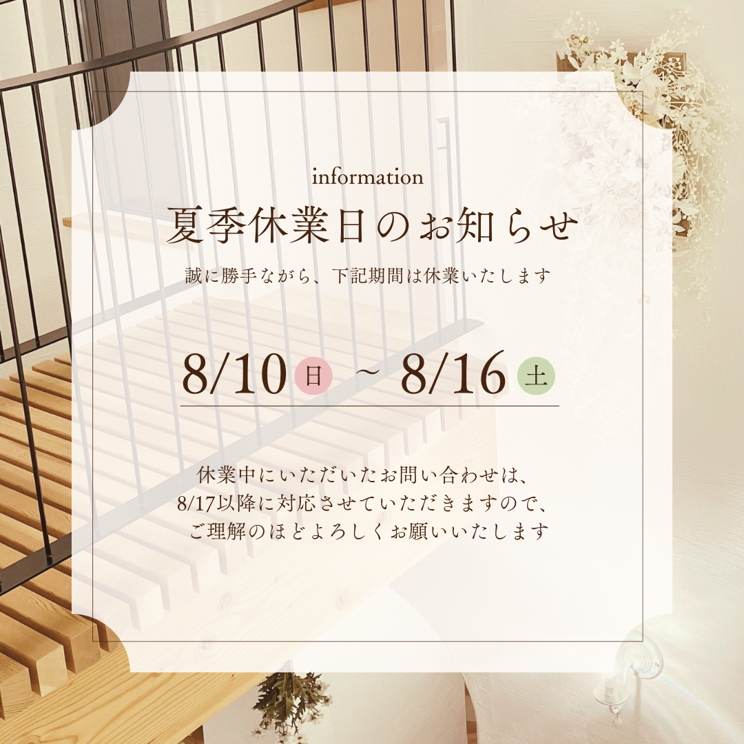 夏季休業のお知らせ...2025年8月9日(土) -